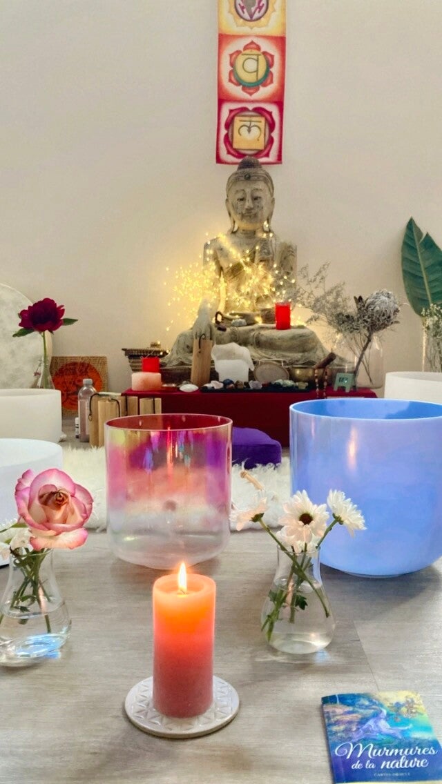 À travers les sons cristallins, la vibration du tambour, l’énergie subtile et la création intuitive, j’ouvre un espace où le corps se détend, le cœur s’apaise et l’esprit se souvient.